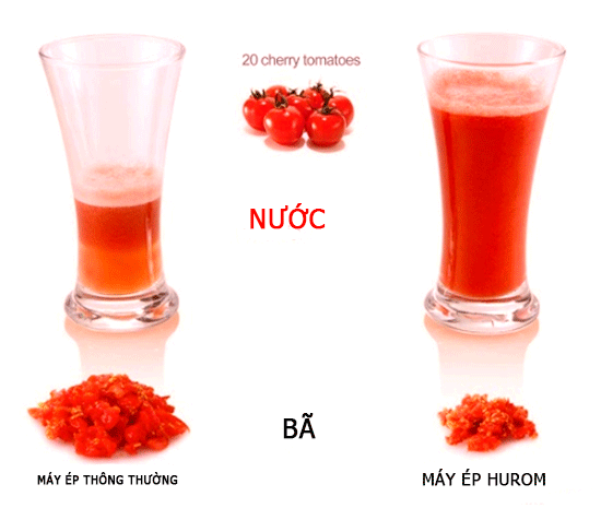Trên đây là hình ảnh so sánh mức nước ép giữa sản phẩm thông thường và sản phẩm máy ép trái cây Hurom HO-WWG11 .Quý khách có thể thấy là nước ép từ máy ép Hurom là nhiều hơn so với máy ép thông thường. Điều này đã chứng minh được máy ép Hurom là sản phẩm được nhiều khách hàng lựa chọn nhất.